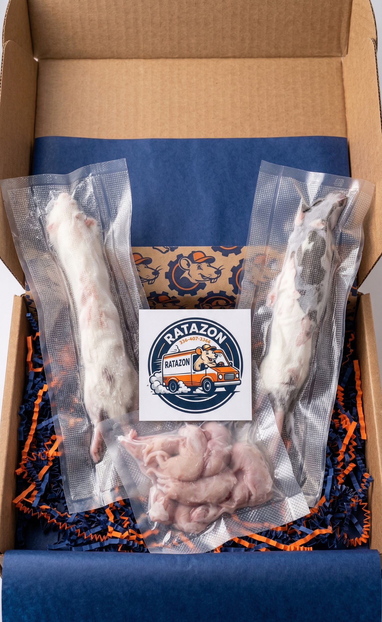 We know how much you care about their well-being, so we’ve taken the worry out of mealtime. Our vacuum-sealed, waterproof packaging keeps every feeder 100% clean and "pathogen-free," locking in the vital nutrients your pets need while making the thawing process effortless and mess-free for you. We treat every feeder with the same level of care you give your pets, ensuring that when you choose Ratazon, you're choosing a healthier, happier future for the animals you love.